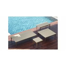 "Enjoy your patio or backyard leisure time with the strong and durable Shore Outdoor Aluminum Coffee Table. Made with an anodized brushed aluminum frame and non-marking black plastic foot caps, … Read More