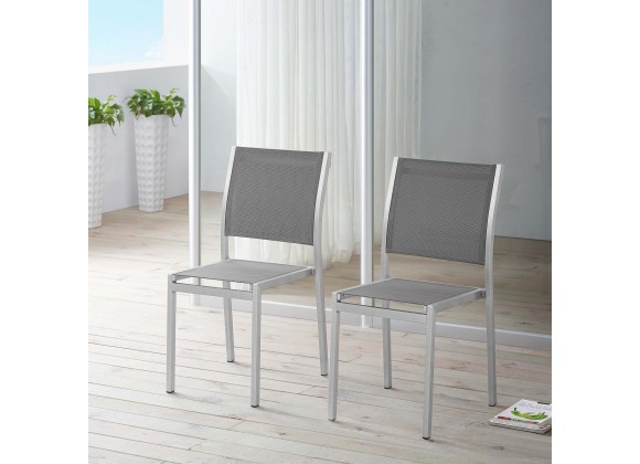 • Modway Shore Side Chair Outdoor Patio Aluminum in Silver Gray - Set of Two - Side Angle