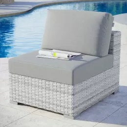 "Refresh your outdoor décor with the Upland Teak Wood Outdoor Patio Furniture Collection. Boldly designed with eye-catching appeal, the Upland Outdoor Patio Teak Wood 3-Piece Sectional Sofa Set is made of solid teak wood and a solidly build construction. The perfect choice for balconies, backyards, patios, gazebos, poolside or garden spaces, this outdoor patio three-seater sofa creates a custom seating experience with its modular design. Known for its ability to withstand extreme weather conditions, teak is the wood selection of choice for long-lasting outdoor furnishings. Rich in modern style, the Upland Outdoor Patio Sectional Sofa Collection opens up a variety of configurations to suit any gathering. Assembly required. Set Includes: Left-Arm Chair, Right-Arm Chair, Armless Chair