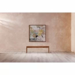 Inspired by the 60s, Anni's rich amber, dusty pink and soft olive tones underscore the playful abstract shapes that are grounded by the cream and black backdrop. The warm brown finish of the solid pine frame highlights the presentation with a vintage feel.