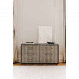 It serves both functional and aesthetic purposes in interior design, offering a stylish solution for storage and display in various rooms of the home. It consists of a flat top surface, often used for serving dishes or displaying decorative items, and a set of cabinets or drawers for storing various items.