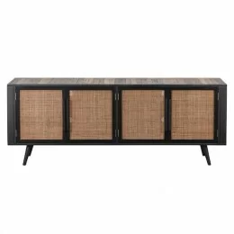 The three doors, with fixed shelving behind, provide ample storage for all of your entertainment needs. Cord cut-outs are in place for ease of connect-ability. Nova Solo Nordic Rattan TV Dresser - 3 Doors is made by hand using reclaimed boat wood, that is carefully peeled, sliced and sanded. A transparent finish highlights the woods natural color variations and textures. Handwoven split rattan door fronts add a natural and unstructured look to each piece.