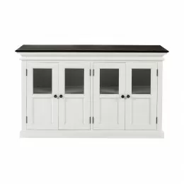 This sideboard buffet adds charm and character to any home decor. With four wooden shaker style doors and three drawers, this piece provides ample storage space for all your dining and entertaining needs. The fixed interior shelving ensures that everything you need is close at hand and organized. The antique brass hardware adds a touch of elegance and sophistication.