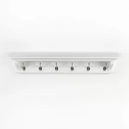 Elevate your hallway or entryway with the charm of the Skansen Coat Rack. A stylish and functional addition to your home, this piece features a distinctive grooved design for a touch of sophistication. Crafted with a solid mahogany frame and finished in a timeless classic white, it seamlessly combines durability with Nordic elegance. Its four large hooks and practical top shelf provide the perfect solution to keep your essentials organized and easily accessible.