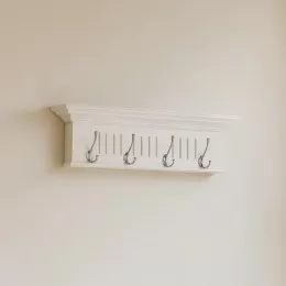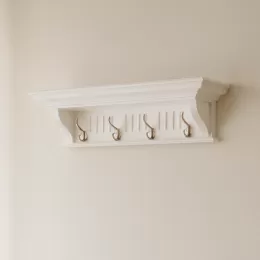 Elevate your entryway with the stylish and functional Skansen Coat Rack. Crafted with a solid mahogany frame and featuring a distinctive grooved design, this piece combines durable, handcrafted quality with timeless Nordic elegance. Its six large, practical hooks and convenient top shelf provide a sophisticated solution for organizing jackets, hats, and bags, while the classic white finish seamlessly complements any decor.