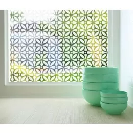 Brighten your room with the artistic explosion of stars etched to Nova Sheer Adhesive Window Film by Odhams Press. This sheer decorative adhesive window film provides limited privacy while adding dimension to any space in your home. The designer sheer film’s interesting printed designs lightly obscure the view while still letting maximum color and light penetrate through a window. The sheer film is ideal for bathroom windows, shower doors or any commercial or residential spot where visibility needs to be obscured.
