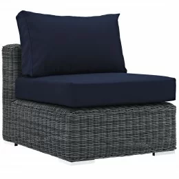 • Modway Shore 5 Piece Outdoor Patio Aluminum Sectional Sofa Set - Silver Navy - Armless Chair in Front Side Angle