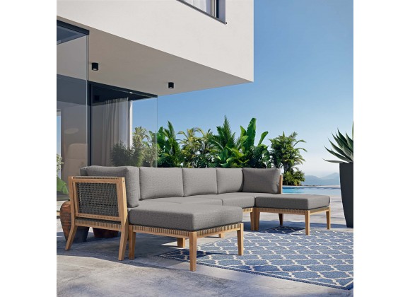 • Modway Clearwater Outdoor Patio Teak Wood 6-Piece Sectional Sofa - Gray Graphite - Set in Back Side Angle