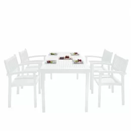 The Bradley Outdoor Patio Wood -piece Dining Set with Stacking Chairs is designed to be maintenance free. Every piece is carefully Finished with a beautiful, multi-coated and weather-resistant paint that will not fade due to over exposure in the sun. It will maintain its new look from the first day and for years to come.