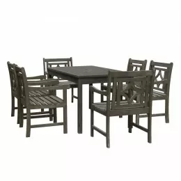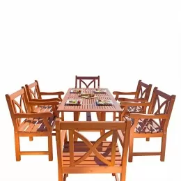 Vifah Bradley Outdoor Patio Wood 7-piece Dining Set with Stacking Chairs - V1337SET26