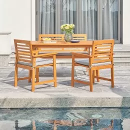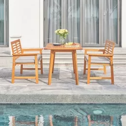 It has a clean-line frame for an aesthetic look. Crafted from solid Eucalyptus Hardwood. This natural wood conversation set is a perfect weather-resistant option for your outdoor living area. The clean-lined and sturdy structure fit in with any patio style, from traditional to contemporary."