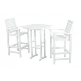 Modern design and laid-back comfort reach new heights with the POLYWOOD® Coastal 3-Piece Bar Set. Ideal for smaller outdoor spaces, this bar-height set is just the right size for an intimate dinner or drinks with someone special. The set is available in four attractive, fade-resistant colors with white fabric and includes two Coastal Bar Chairs and a Nautical 31” Bar Table. Both the frames and the table are built for durability and sturdiness. They are constructed of solid POLYWOOD® recycled lumber, while the sling fabric is tough enough to resist tearing, fading, mildew and most weather conditions.