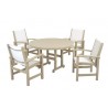 The airy design of the POLYWOOD® Coastal 5-Piece Dining Set is like a warm breeze blowing in off the coast. You’ll love how this modern sling furniture blends style and comfort to create a unique look in your outdoor living space. Available in four attractive, fade-resistant frame colors with white fabric, this set includes four Coastal Dining Chairs and a Round 48” Dining Table. Both the table and the chair frames are constructed of solid POLYWOOD® recycled lumber that looks like painted wood but doesn’t require the maintenance of real wood. The sling fabric dries quickly as well as resists tearing, fading, mildew and most weather conditions.