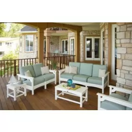 You’ll want to share the luxurious comfort of the POLYWOOD® Club 4-Piece Deep Seating Set with someone special. This stunning set creates the perfect intimate seating area in any outdoor living space. It’s available in White with Spa marine grade cushions and includes two Club Chairs, one Club Ottoman, a Club 18” Side Table, and two 16" pillows in Bird's Eye. And because it’s constructed of solid POLYWOOD® recycled lumber and enhanced with fade- and weather-resistant cushions, you can be sure this furniture is just as durable as it is beautiful.