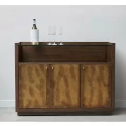 Both functional and stylish, this Mid-Century Modern 4-Door Credenza is the perfect finishing touch for a contemporary space. The striking geometric pattern flows seamlessly across the four doors, making it a bold statement piece for entryways, living rooms, or dining areas. With a spacious interior for convenient storage and a roomy top for displaying your favorite décor, this credenza effortlessly combines form and function in a sophisticated design.