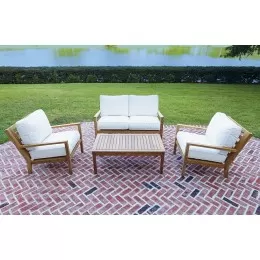 Royal Teak Collection™ is kiln-dried and fully machine made with mortise and tenon joints for a tight fit. Only brass or stainless steel hardware are used. The high content of oil in the teak protects the furniture from the outdoor elements no matter what climate you live, ensuring a lifetime of enjoyment with the furniture. The high oil content is why teak is quoted for its durability and strength. The Teak is dense and when dry and combined with natural oils makes it very resistant to rot caused by fungal decay and is a natural repellant to termites and other insects.