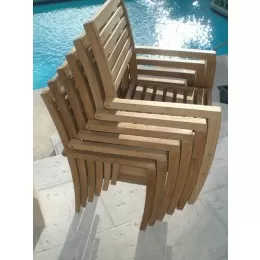 The Royal Teak Sundaze Sling is a very functional and elegant stacking teak chair that looks stunning around any Teak Patio Dining Table. Constructed in solid teak with a strong sling seat and back, they stack for convenient storage. Delivered knock-down with easy assembly for years of outdoor use. Strong and sturdy for both residential and commercial use.