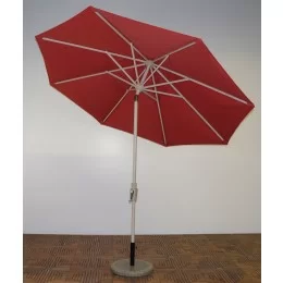 11'ft x 8 rib, crank lift Market umbrella w/Collar auto tilt, Aluminum Pole: 40 x 1.2 mm wall thickness, Aluminum rib: 19.5 x 13.5 mm, and Stainless steel cord. With an Attractive Outdura Solution Dyed Acrylic Canopy.