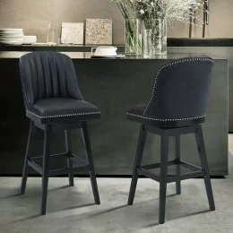 • Armen Living Titana Metal Swivel Barstool in Ford Black Pu and Black Finish Back