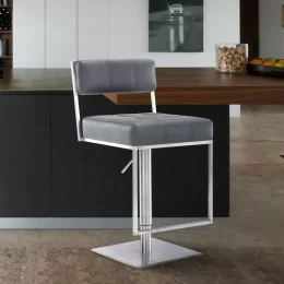 The look of the Mediterranean is at your fingertips when you incorporate this stylish transitional barstool into the comfort of your home. Beautifully complimenting any home bar, kitchen, dining or game room, the Titana Counter Barstool was created in a lovely metal Mineral / Black finish complimented by Black Ford Faux Leather upholstery, providing an exceptional level of style and comfort all at once. The Titana barstool also boasts the ability to swivel, so that you may easily adjust yourself to whatever seating arrangement you may find yourself, and the leatherette seat makes it comfortable to stay there as long as you'd like.