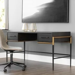 Designed with contrasting materials, this desk will add interest and function to various spaces. A smoked brown acacia wood frame is uniquely complemented with antique bronze iron hardware and a … Read More