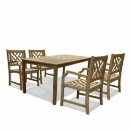 Vifah Modern Patio Bradley Rectangular Extension Table & Armchair Outdoor Wood Dining Set