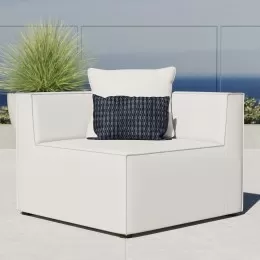 Enjoy your patio or backyard leisure time with the strong and durable Shore Outdoor Aluminum Right-Arm Loveseat. Made with an anodized brushed aluminum frame and non-marking black plastic foot caps, Shore comes outfitted with resilient Sunbrella® fabric canvas cushions tested to last through all weather conditions. The Shore Outdoor Aluminum Right-Arm Corner Sectional Loveseat complements your casual gatherings with a look and functionality you can rely on.