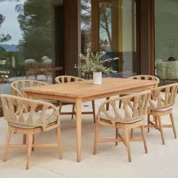 Skyline Design uses only the best natural materials, such as teak, wicker, and polished metals with a long-lasting powder coating. These elements create a beautiful woven pattern, similar to the way sunlight comes through a window, filling the space with a bright glow. With Mediterranean Calm, our collections blend quality workmanship, natural materials, and stunning design. Experience the peacefulness and create a space that radiates the soothing mood of the Mediterranean.
