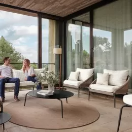Skyline Design uses only the best natural materials, such as teak, wicker, and polished metals with a long-lasting powder coating. These elements create a beautiful woven pattern, similar to the way sunlight comes through a window, filling the space with a bright glow. With Mediterranean Calm, our collections blend quality workmanship, natural materials, and stunning design. Experience the peacefulness and create a space that radiates the soothing mood of the Mediterranean.
