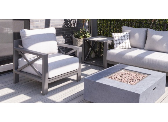 • Outdoor furniture piece with powder coated aluminum frame and fabric upholstered seat and back cushion