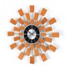 This wooden Pixel Clock features retro style, solid wood slices connected by thick metal in chrome finished. Black and silver center clock with Arabic numerals. Quartz movement requires one 'AA' battery, not included.