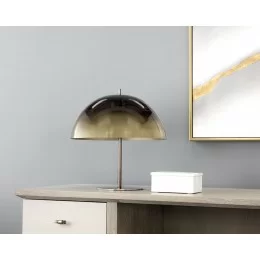 The essence of the Tulip table lamp is simplicity. Modern manufacturing technology embracing elegance and craftsmanship. Fabricated and machined from steel and made to high specification. It is inspired by dynamic fluid aesthetics. Spun metal frame and diffuse, die-cast aluminum diffuse support arms and lamp-holder support, Sandblasted pressed glass upper diffuse screen. Traditional dimmer for 0-100% luminosity adjustment fitted on the polarized cord.