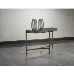 This console table will bring warmth and style to various living and lounge spaces. The oak wood veneer top is complemented with architectural antique brass iron legs for added appeal. … Read More