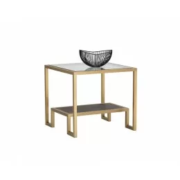 This round side table will create a moody environment. Crafted from concrete, this piece features hand sculpted ridges with a painted brass and gold finish. The perfect addition to living, … Read More