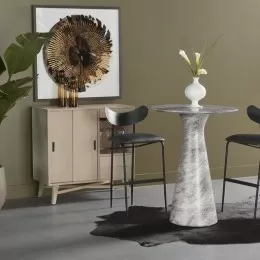 This console table combines mixed materials in a streamlined design for an elevated rustic look. Features a cappuccino marble top under fibre matting with a bold dark grey wood frame. … Read More
