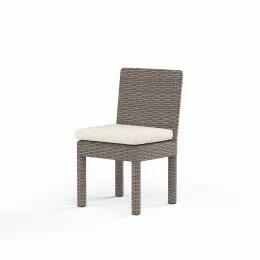 Sunset West's Coronado Dining Chair boasts luxurious deep seating enveloped in a stunning resin wicker finish in Driftwood. Unmatched comfort awaits with plush cushions, featuring Sunbrella fabric in an array of rich stock and customizable colors and patterns. Coronado seamlessly integrates into the Driftwood color story, effortlessly complementing pieces from the Provence, Laguna, and Bazaar collections.