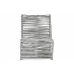 The Miami Club Chair showcases precise lines and carefully considered angles, characterized by its box frame and detailed striated rope design. Crafted with a rust-free aluminum frame, it is skillfully hand-wrapped in premium all-weather olefin rope with a silver-grey finish, featuring a pinched back leg detail for added elegance. Miami is part of the Frost color story, complementing the Newport Collection and Carrara tables from the Bazaar.