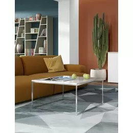 The Gleam system of accent tables is a modular system consisting of wood or marble tops available in a variety of different finishes and colors. Paired with elegant metal legs that are either lacquered black or chromed, there are dozens of different combinations available. Available in a square or rectangular coffee table and in a side table.