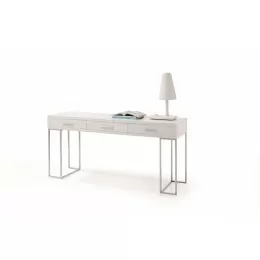 The KD12 is a modern desk with a classical touch. Made in a matte grey finish, & paired with brushed stainless legs for that luxurious look. Features 3 drawers on the desk, and made with an extra four drawers for additional storage. Available as shown or in a white high gloss with chrome legs.