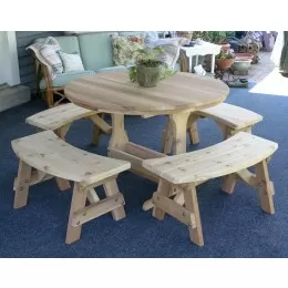 This collection includes 4 of our award winning Highback Chairs & 1 - 47” Round Table with Trestle Legs.   The Highback Chair design includes lower lumbar support. The women choose the Highback design for its comfort and handsome design but is also preferred by the tall and large men. This table remains one our favorites. Made from # 1 grade Western Red Cedar, the table is sure to be one of your favorites too.