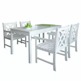 • Malibu Outdoor 6-piece Wood Patio Rectangular Table Dining Set - White BG