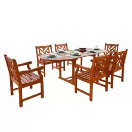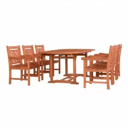 Vifah Malibu Outdoor 7-piece Wood Patio Extendable Table Dining Set - V144SET41