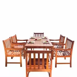 Vifah Malibu Outdoor 7-piece Wood Patio Rectangular Table Dining Set - V98SET72