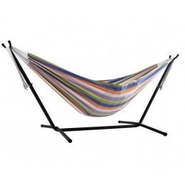 • Double Cotton Hammock with Solid Pine Arc Stand - Retro