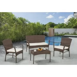 W Unlimited Balluccia Collection Outdoor Garden Wicker Conversational Furniture 4PC set with Table