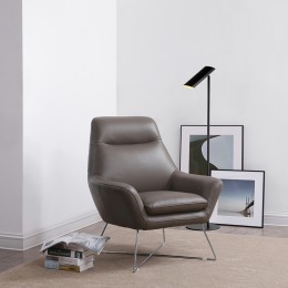 • Whiteline Modern Living Benbow Leisure Chair In Light Grey Faux Leather - Front