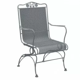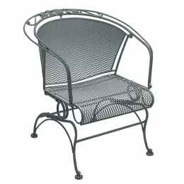 Elevate your outdoor dining experience with the Woodard Briarwood Coil Spring Barrel Chair, where classic design meets unparalleled comfort. This dining-height chair features a curved back and deep seating, providing exceptional support and relaxation during meals. Its unique coil spring base allows for gentle rocking and bouncing movements, adding an element of dynamic comfort to your patio or backyard setting. Meticulously crafted from hand-forged and welded wrought iron, this chair showcases Woodard’s attention to detail, with a decorative floral emblem at the top, subtly contoured diamond mesh seat and back, and a barrel-style silhouette that adds a touch of elegance to any space.